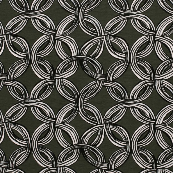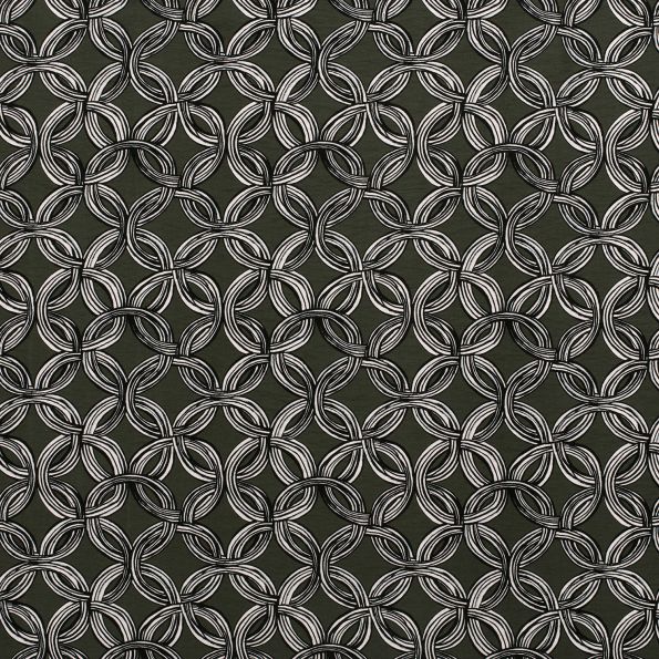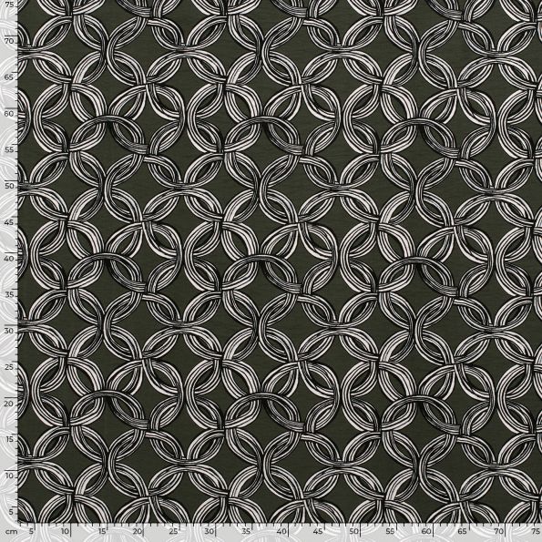 Tissu Crêpe de Viscose Circles abstraits sur fond Vert foncé - Par 10 cm