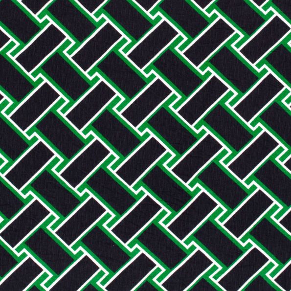 Tissu Crêpe Georgette de Viscose motifs abstraits vert et noir sur fond Blanc - Par 10 cm