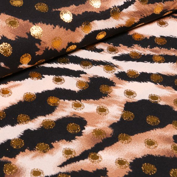 Tissu Crêpe georgette Zébré et pois dorés sur fond Beige - Par 10 cm