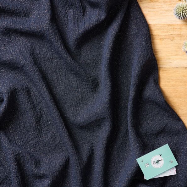 Tissu Crêpe pailleté Craftine Box Nuit Etoilée Bleu marine - Par 10 cm