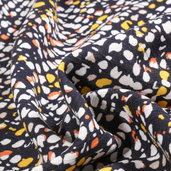 Tissu Crépon de viscose Sylia sur fond Bleu marine - Par 10 cm