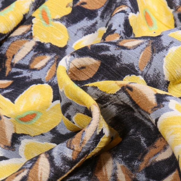 Tissu Crépon viscose Agata sur fond Bleu marine - Par 10 cm