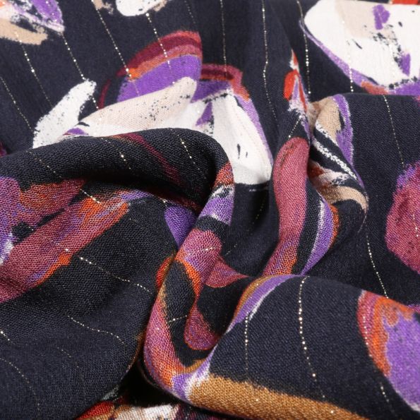 Tissu Crépon viscose lurex Noura violet sur fond Bleu marine - Par 10 cm