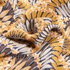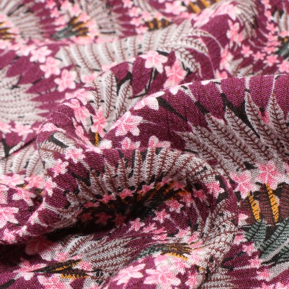 Tissu Crépon viscose Plumes de fleurs sur fond Violine - Par 10 cm