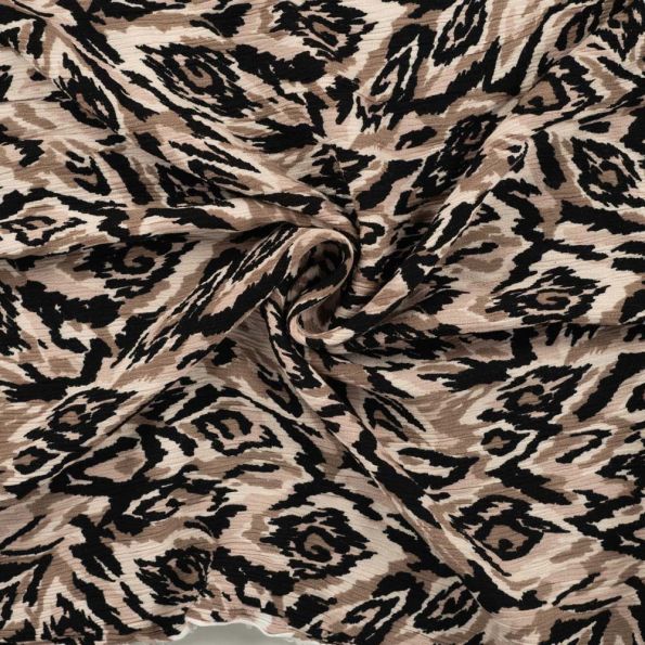 Le crépon en viscose est un tissu léger et fluide fabriqué à partir de fibres de viscose. Il présente une texture légèrement froissée qui lui donne un aspect élégant et décontracté. Ce tissu est idéal pour la confection de vêtements estivaux tels que des robes, des jupes, des chemisiers ou des blouses en raison de sa légèreté et de sa respirabilité. Sa texture créponnée ajoute de la dimension et du mouvement aux vêtements, ce qui les rend parfaits pour les tenues décontractées ou habillées.