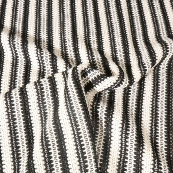 Tissu Crochet ajouré rayé Noir et Blanc - Par 10 cm