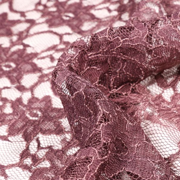 Tissu Dentelle Eva sur fond Grenat - Par 10 cm