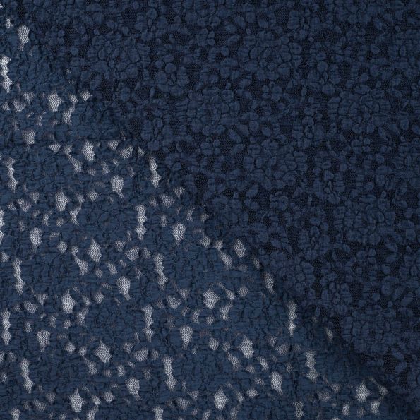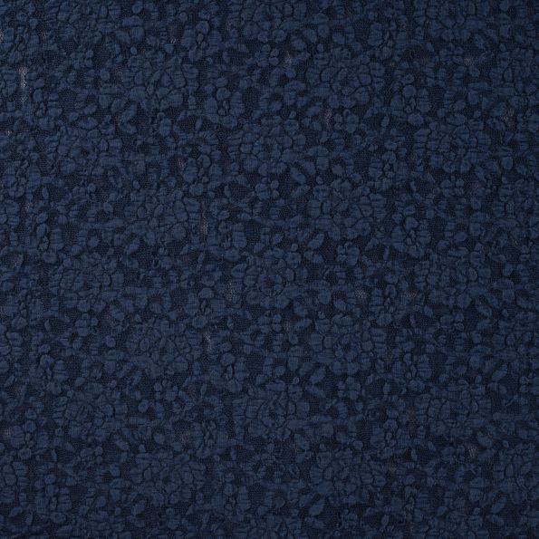 Tissu Dentelle Fleurs gaufrées Bleu marine - Par 10 cm