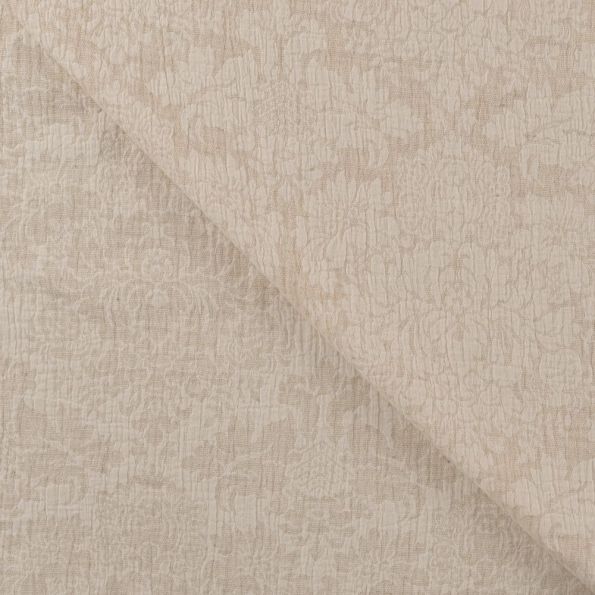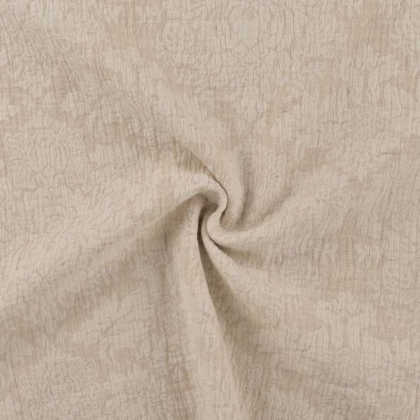 Tissu Double gaze Coton Lin impression fleuris Beige - Par 10 cm