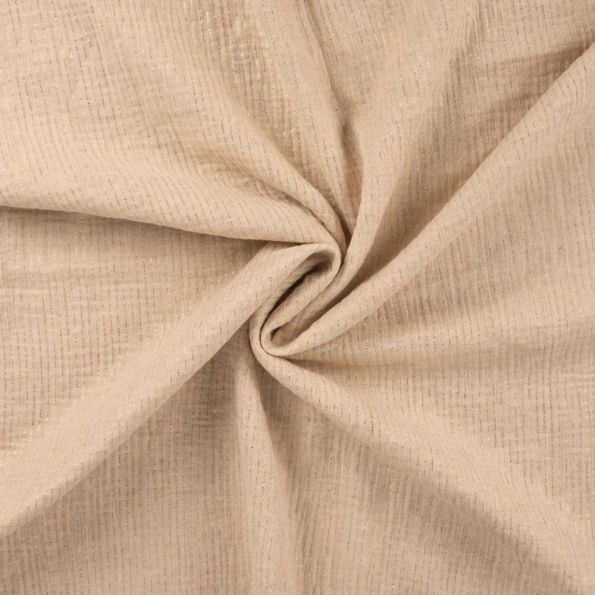 Tissu Double gaze Coton Lin Rayures dorées lurex sur fond Beige - Par 10 cm