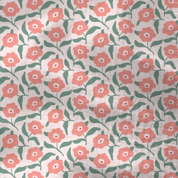 Tissu Double gaze Coton Storia fleuris sur fond Rose pâle - Par 10 cm