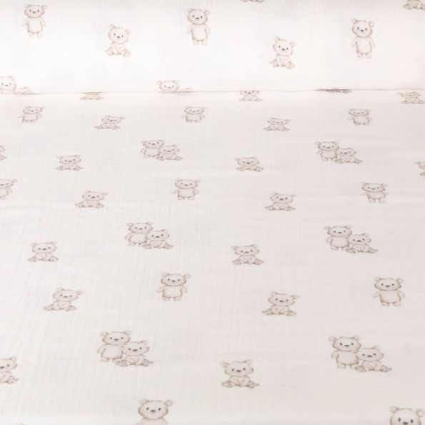 Tissu Double gaze de Coton Bio digital Oursons sur fond Blanc - Par 10 cm