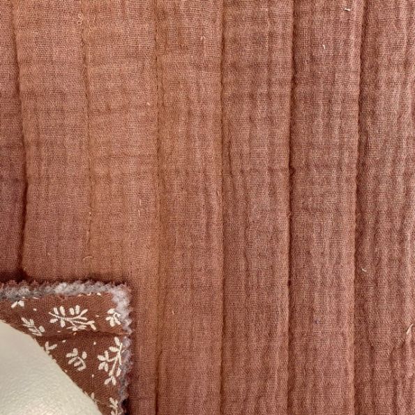 Tissu Double gaze Matelassée réversible Marron - Par 10 cm