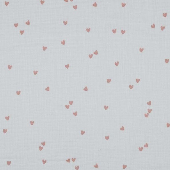 Tissu Double gaze Petits coeurs roses sur fond Blanc - Par 10 cm