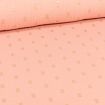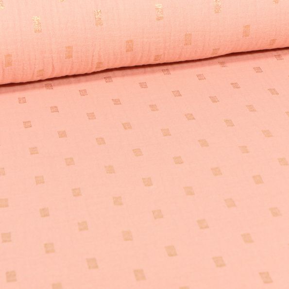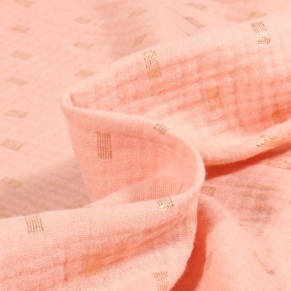 Tissu Double gaze Rectangles striés dorés sur fond Rose saumon - Par 10 cm