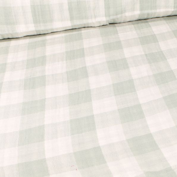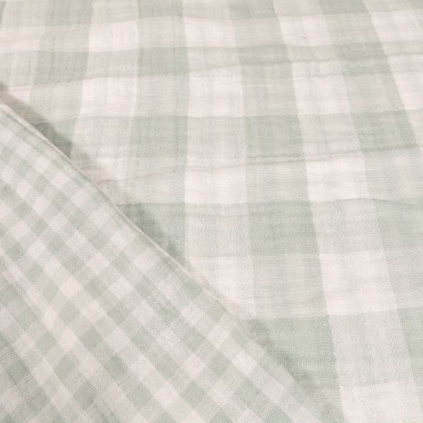 Tissu Double gaze reversible Vichy sur fond Vert pastel - Par 10 cm
