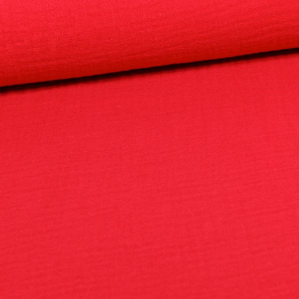 Tissu Double gaze uni Bio Rouge griotte - Par 10 cm