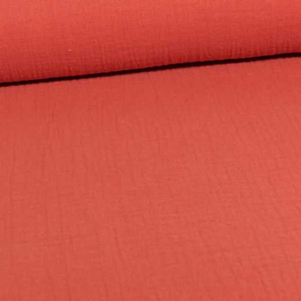 Tissu Double gaze uni Bio Rouge tomette - Par 10 cm