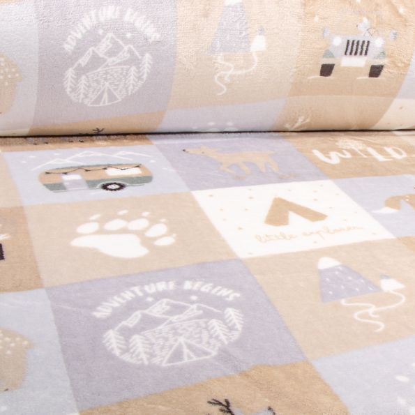 Tissu Doudou Aventurier sur fond Beige - Par 10 cm