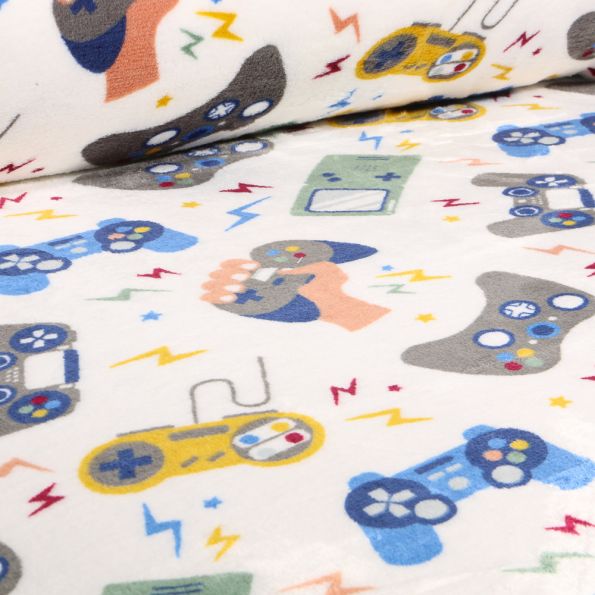 Tissu Doudou Manette gamer sur fond Blanc cassé - Par 10 cm