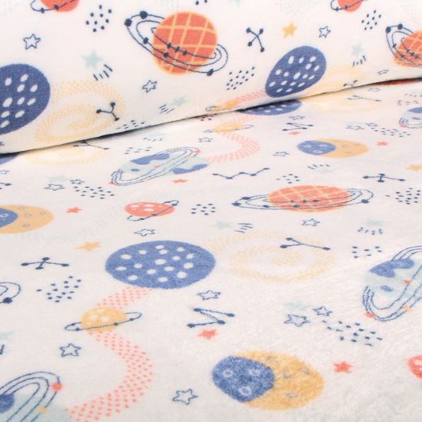 Tissu Doudou Space planet sur fond Blanc cassé - Par 10 cm