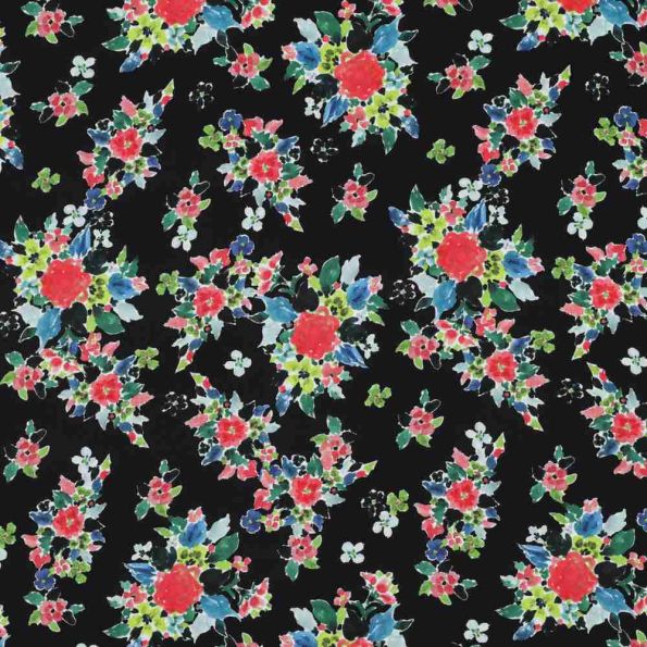 Noctaflor est un tissu fluide et élégant en ECOVERO™, sublimé par un motif floral vibrant sur fond noir profond. Les bouquets aux fleurs rouges, bleues, blanches et feuillages multicolores créent un contraste saisissant, à la fois audacieux et raffiné. Composé à 100 % de fibres ECOVERO™ certifiées Lenzing™ et Oeko-Tex Classe 1, Noctaflor allie esthétique et écoresponsabilité. Avec une laize de 138 cm et un poids de 115 g/m², il est idéal pour la confection de vêtements légers, chemisiers, jupes, robes estivales ou accessoires stylés. Facile à entretenir, il se lave en machine à 30°.