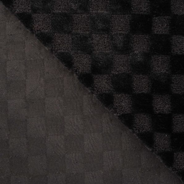 Tissu Fausse fourrure à carreaux Noir - Par 10 cm