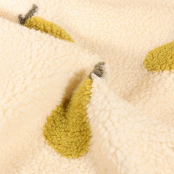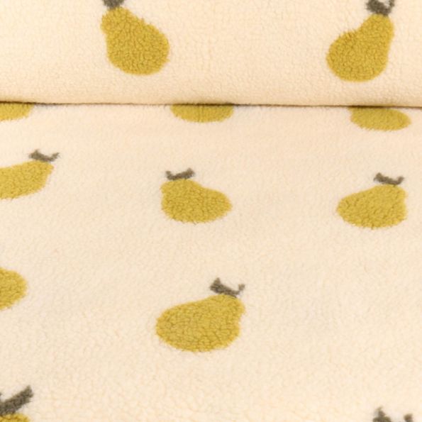 Tissu Fausse fourrure Teddy Bouclettes Poires sur fond Ecru - Par 10 cm