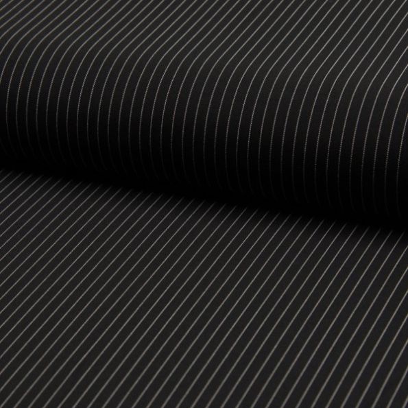 Tissu Gabardine légère et fluide Rayures fines blanches sur fond Noir - Par 10 cm