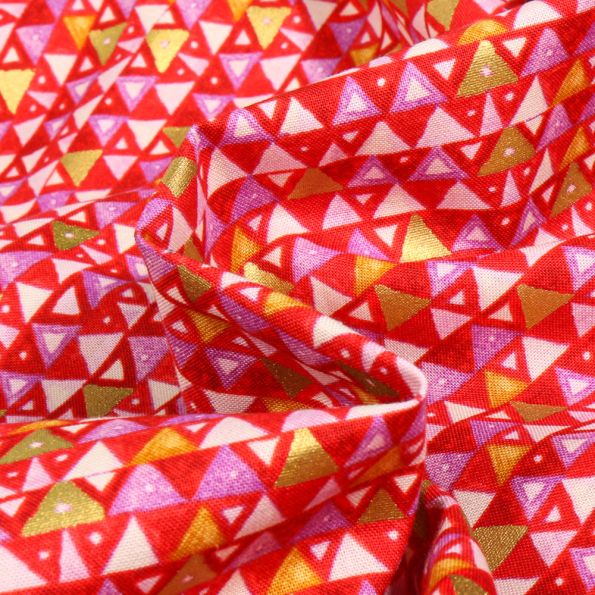 Tissu Gustav Klimt Triangles dorés sur fond Rouge - Par 10 cm