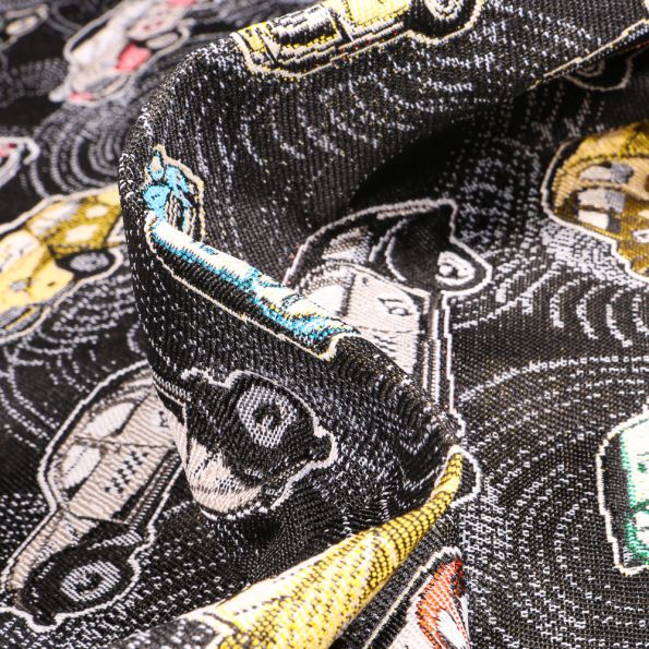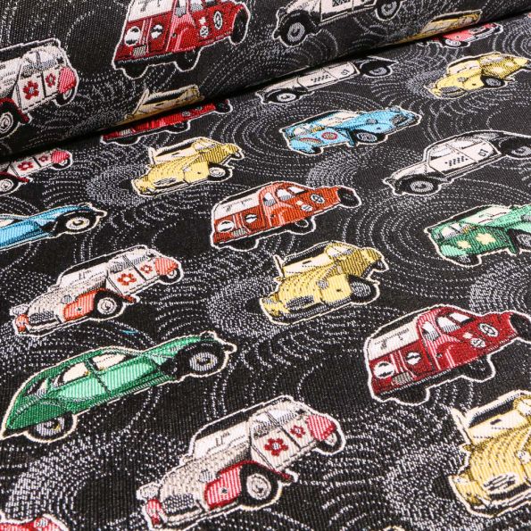 Tissu Jacquard 2 CV sur fond Noir - Par 10 cm