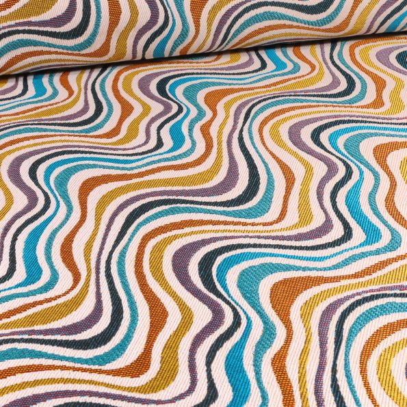 Ce tissu jacquard, fabriqué en France est de très belle qualité, avec ses motifs originaux. Il est idéal pour la confection de fauteuils, poufs, coussins, rideaux....