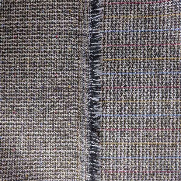 Un magnifique jacquard extensible utilisé dans la Craftine Box d'automne (octobre) aux motifs pied de poule, en noir et blanc. Il est agrémenté de quelques pointes de couleurs pour la modernité et de reflets dorés pour une allure chic.