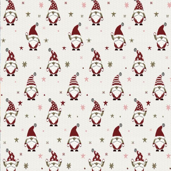 Tissu Jacquard d'ameublement Bonhomme de noël Lurex sur fond Blanc cassé - Par 10 cm