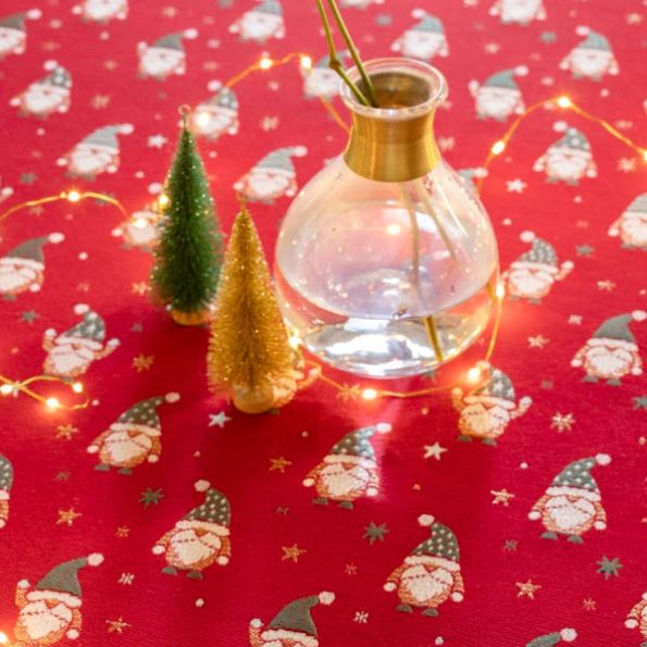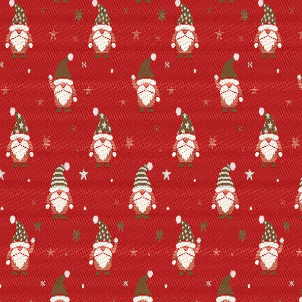 Tissu Jacquard d'ameublement Bonhomme de noël Lurex sur fond Rouge - Par 10 cm