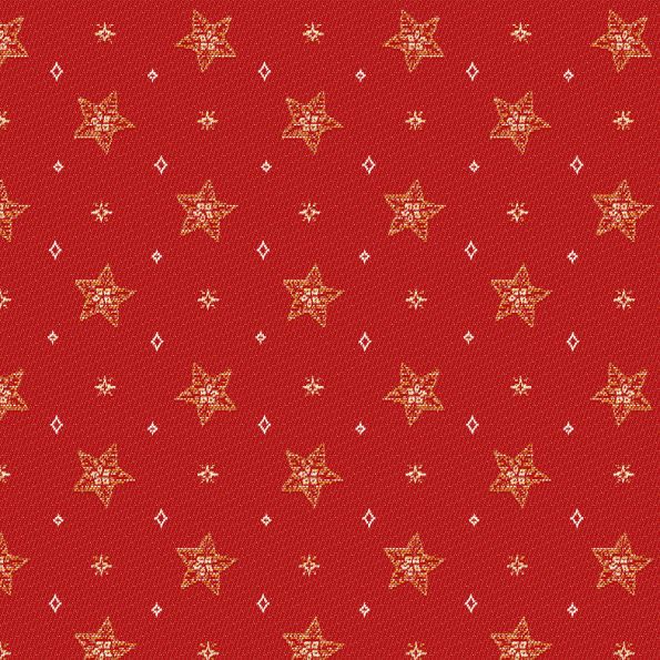 Tissu Jacquard d'ameublement Etoiles de noël Lurex sur fond Rouge - Par 10 cm