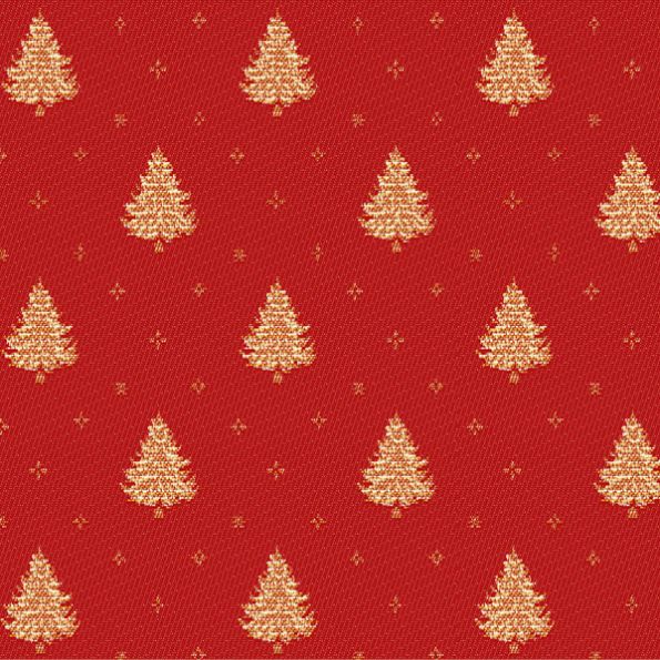 Tissu Jacquard d'ameublement Sapin de noël de noël sur fond Rouge - Par 10 cm