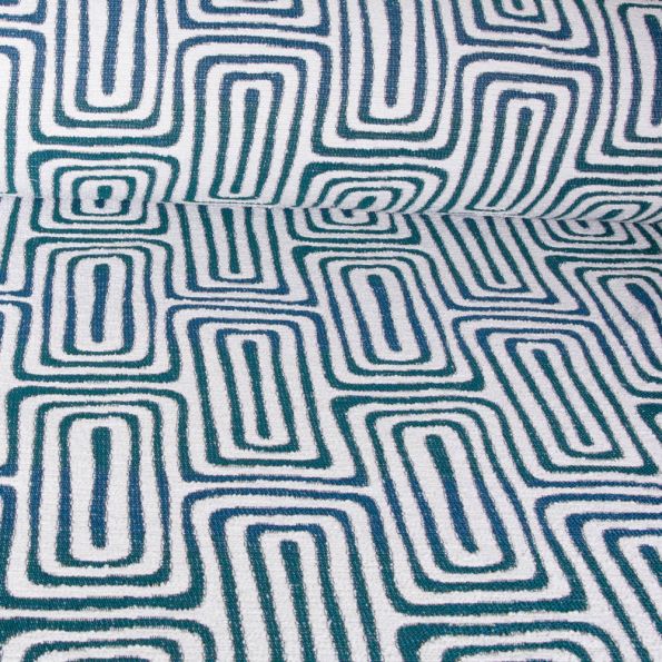 Tissu Jacquard d'ameublement tissé teint Gobi bleu sur fond Blanc - Par 10 cm