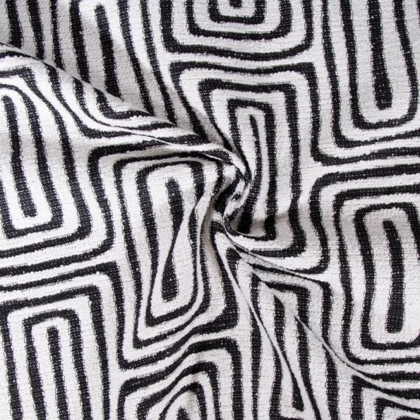 Tissu Jacquard d'ameublement tissé teint Gobi noir sur fond Blanc - Par 10 cm