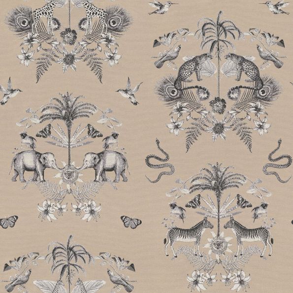 Tissu Jacquard Double face Premium Animaux de la jungle et feuilles sur fond Beige - Par 10 cm