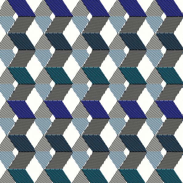 Tissu Jacquard Géométrique Bleu sur fond Blanc - Par 10 cm
