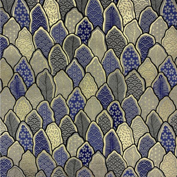 Tissu Jacquard Matcha doré sur fond Bleu - Par 10 cm