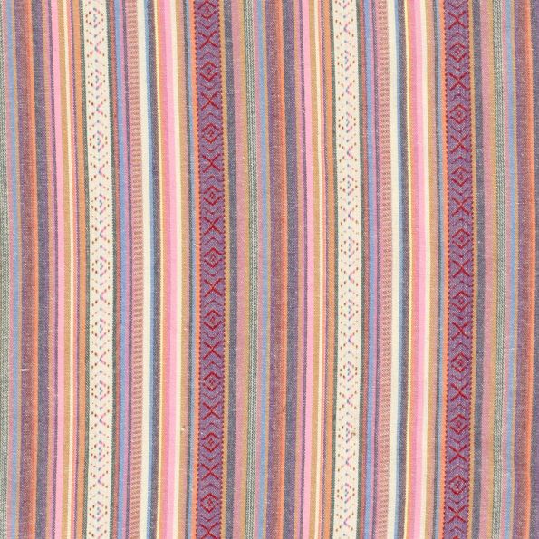 Tissu Jacquard Mexicain Rayé sur fond Rose - Par 10 cm