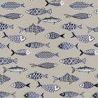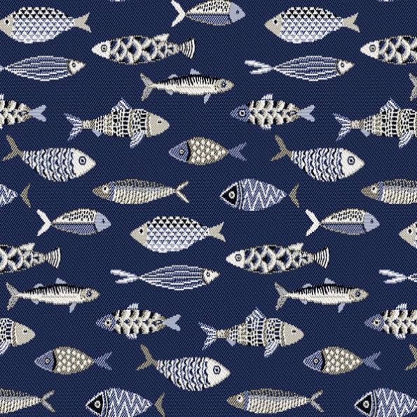 Tissu Jacquard Poissons sur fond Bleu marine - Par 10 cm