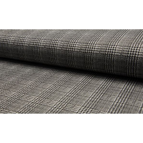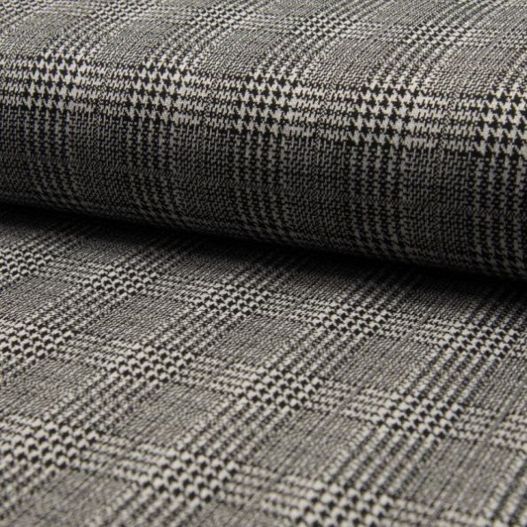 Tissu Jacquard polyviscose extensible Écossais pied de poule Noir sur fond Blanc - Par 10 cm