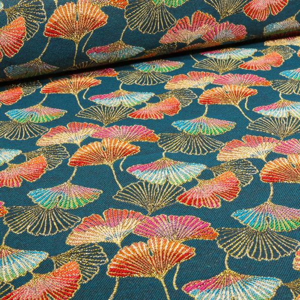 Tissu Jacquard Shali sur fond Bleu canard - Par 10 cm