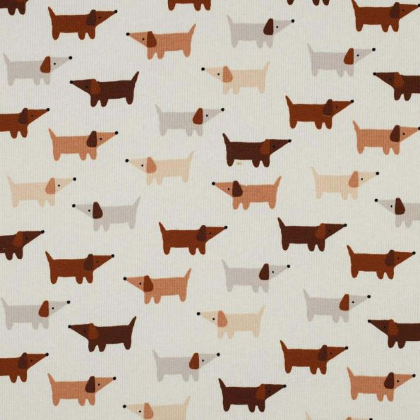 Tissu Jersey Bord Côte Dog sur fond Ecru - Par 10 cm