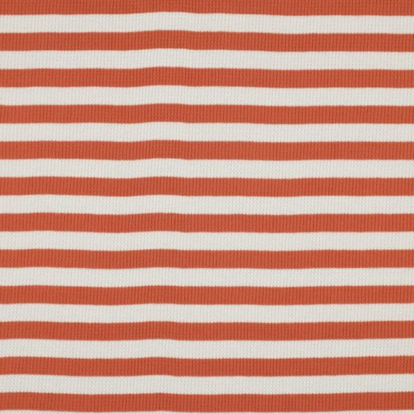 Tissu Jersey Bord Cote Rayé Brique sur fond Blanc - Par 10 cm
