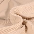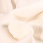 Ce tissu Jersey Ottoman uni est un tissu en maille qui utilise la technique du tricot ottoman. C'est cette technique qui est à l'origine de la structure côtelée du tissu. Les côtes s'étendent sur toute la largeur du tissu. Étant donné qu'il s'agit d'un tissu à mailles, il possède donc une propriété de bi-stretch, c'est à dire qu'il est extensible dans la largueur et longueur. Largeur du tissu s'étend plus que sa longueur. Il y a également 5% d'élasthanne dans sa composition, ce qui assure que le tissu retrouvera sa forme après étirement.
