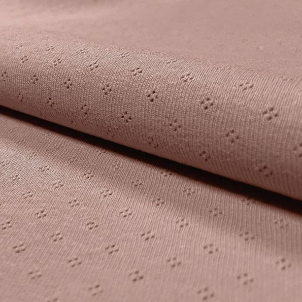 Tissu Jersey Coton ajouré Baby Vieux rose - Par 10 cm